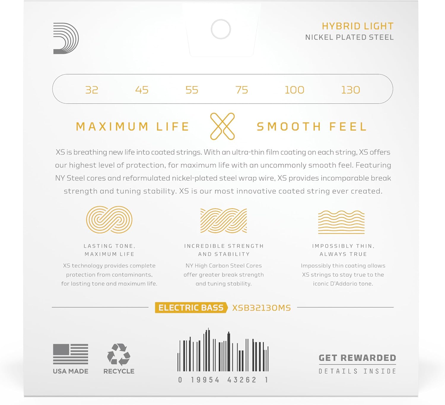 - Premium reformulated nickel-plated steel wrap wire used for XS bass strings features re-engineered core-to-wrap ratios, for a more versatile string which still maintains a familiar feel, plus accentuated harmonics.